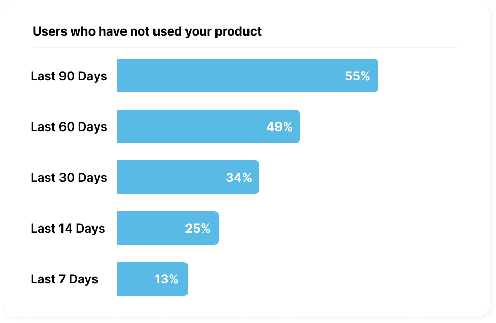 Identify users who are drifting away from your product or a specific feature and haven’t come back since a specific amount of days. Re-engage them to reduce churn.